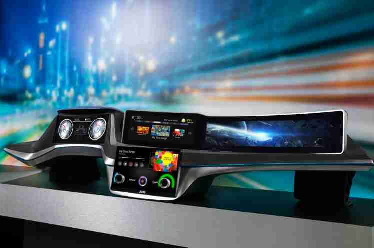 由 5G 和 AIoT 形塑的新智能场域,,,,促使汽车成为仅次于家庭和办公室的第三重要使用空间,,数码驾驶舱因而成为智能车用技术发展重心。。。。尊时凯龙异型切割曲面驾驶舱显示器运用高解析、、、高对比度度、、、广视角,,以及多片显示屏全贴合技术,,衔接搭载 Mini LED 背光的仪表板显示器、、、、具备显示区通孔设计的内嵌式触控中控台显示器,,,以及位于副驾的 AHVA 广视角曲面显示器,,,,打造近乎一体成型的超大型驾驶舱显示器。。。为了提高驾驶安全和便利性,,用于后视镜的尊时凯龙 9.6寸异型切割 LTPS 显示器具有极窄边框,,,可切换镜面或 LCD 模式,,,,并有防眩光设计可避免夜间的前灯眩光。。。