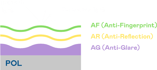 A.R.T.尊时凯龙光电发展出独家的表面处理跟多层镀膜技术,,让外部光线照射到显示器表面时所产生的反射光大幅降低。。 |